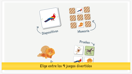 Las siguientes categorías para niños en edad preescolar están disponibles gratis: Comidas y bebidas, Zoológico y Cuerpo.