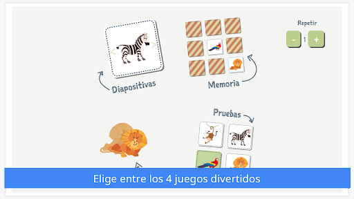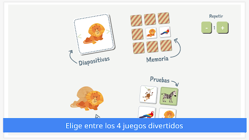 • Aprende y juega: juegos estimulantes (diapositivas, juegos de concentración, puzzles y juegos de preguntas y respuestas).