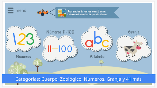 Aprender idiomas con Emma te ofrece varios juegos divertidos e interactivos para niños en edad preescolar para aprender en las siguientes áreas: