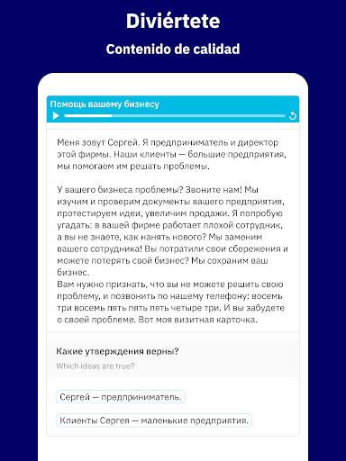 💡 Un proceso de aprendizaje diseñado para ti que es fácil y guiado: Sentirás que estás aprendiendo más ruso cada día. Cada frase, ejercicio, repaso y texto de comprensión lectora ha sido cuidadosamente seleccionado para ti.