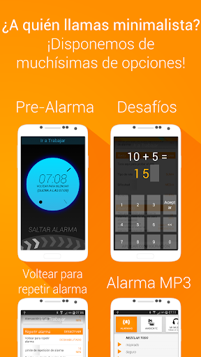 La función inteligente de repetición de alarma te permite limitar el tiempo para dormir unos minutos más. Gracias a los desafíos, podrás asegurarte de que estás despierto. ¡Disponemos de tonos de alarma tan intensos que te harán SALTAR de la cama!