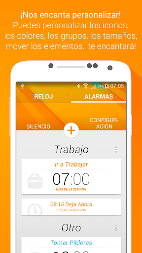 Podrás activar y desactivar las alarmas por grupo, configurar los iconos y colores, mover, copiar y personalizar el contenido según tus preferencias.