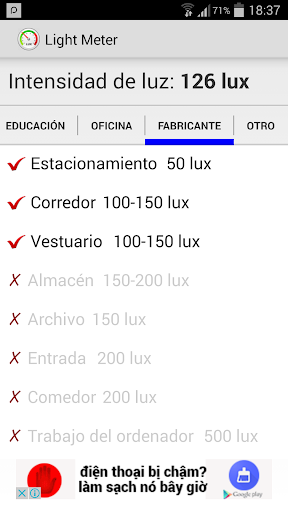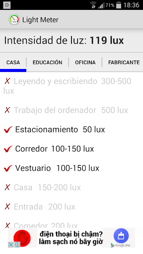 Medidor de Luz es una aplicación que proporciona una gama de intensidad de luz recomendado para diferentes actividades / ambientes y compruebe si la luz actual es adecuado para los que las actividades / ambientes. Contribuye a proteger su vista!
