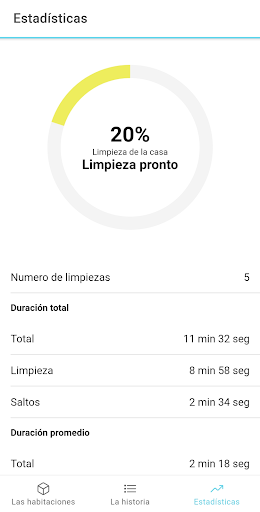 En estadísticas e historial, puede ver todos los datos sobre limpiezas pasadas.