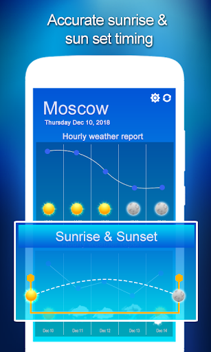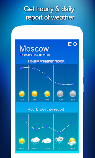 Esta aplicación diaria del tiempo puede mostrar la temperatura actual, diariamente y Pronósticos por hora, tiempo de amanecer y atardecer, humedad, velocidad del viento, presión del aire y índice UV