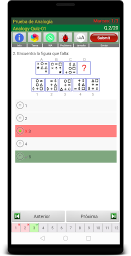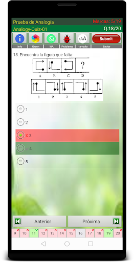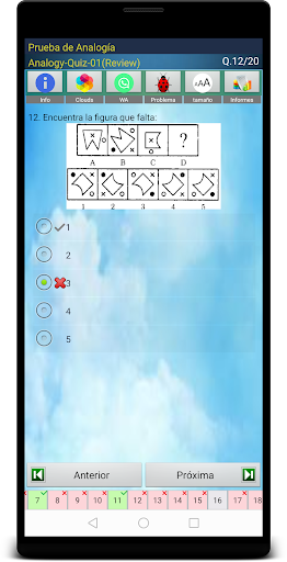 - Modo de prueba cronometrado en el que debes atender 20 preguntas en 20 minutos