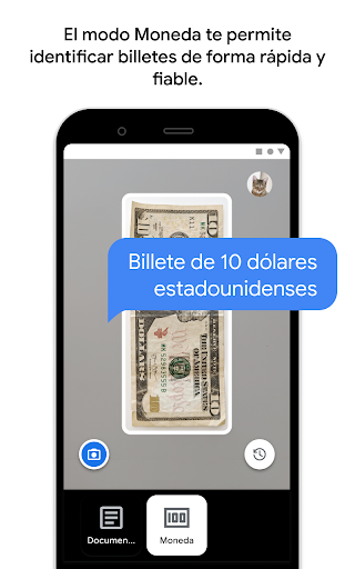 • Puedes usar el modo Moneda para identificar billetes de forma rápida y fiable.