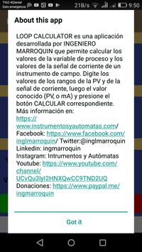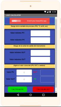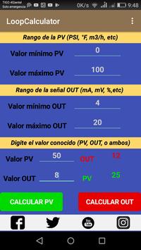 LoopCalculator es una aplicación desarrollada por INGENIERO MARROQUIN que permite calcular los valores de la variable de proceso y los valores de la señal de salida de un instrumento de campo. Digite los valores de los rangos de la PV y de la señal de OUT (mA, mV, V, ohm, %, etc) , luego el valor conocido (PV, OUT, o ambos ) y presione el botón CALCULAR correspondiente. Así obtendrá el valor requerido.