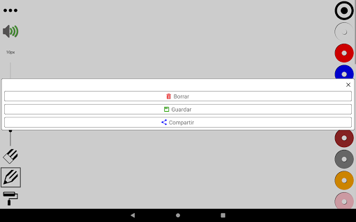 - nivel de grosor, cambia el grosor de la herramienta de dibujo