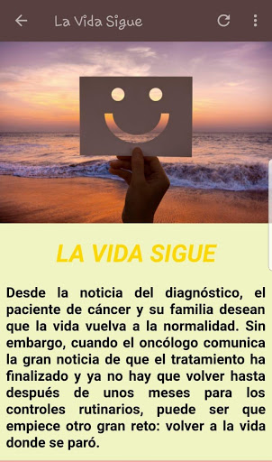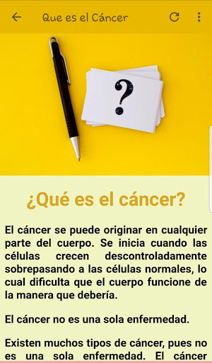 En esta práctica y útil app Lucha contra el Cancer podrás encontrar información sobre la enfermedad, los síntomas generales que pueden llamar la atención, los tipos de tratamientos que se aplican , cuál es su procedimiento y para qué sirve.