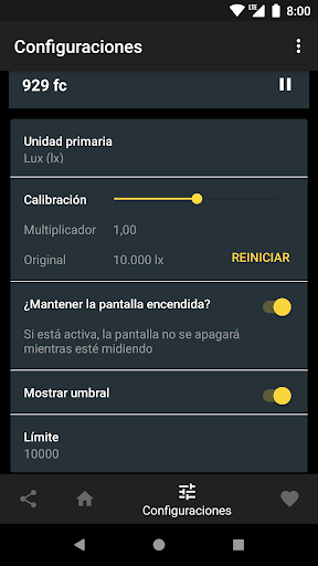 Los valores que se obtienen con esta aplicación son indicativos, y dependen de su dispositivo. Algunos dispositivos no tiene un sensor de luz, o su precisión varía, y por lo tanto ni garantizamos ni asumimos ninguna responsabilidad por la precisión de la información obtenida.