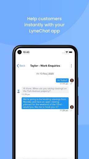 • Chat instantáneo: chatea con los clientes que están navegando por su sitio web o listado en línea directamente desde su aplicación Lynechat Mobile. Se puede llegar al instante para que pueda responder a los posibles compradores o lidiar con las preguntas del servicio al cliente en tiempo real.