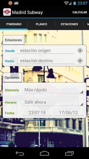 La aplicación está destinada al cálculo rápido y sencillo de itinerarios entre dos estaciones del metro de Madrid sin necesidad de conexión a internet.