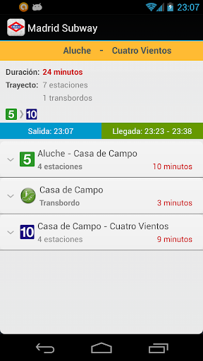 - Completa información del itinerario a realizar con la duración del trayecto y los transbordos a realizar.