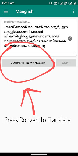 A very lightweight app to convert malyalam text to manglish. just paste, type, or select text to convert.