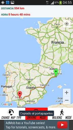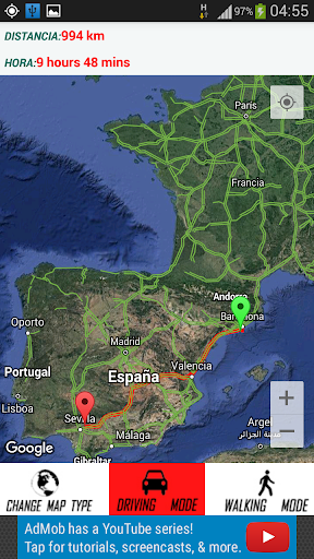 usted también tiene la opción de visualizar la ruta, calcular la distancia y el tiempo entre dos ubicaciones.