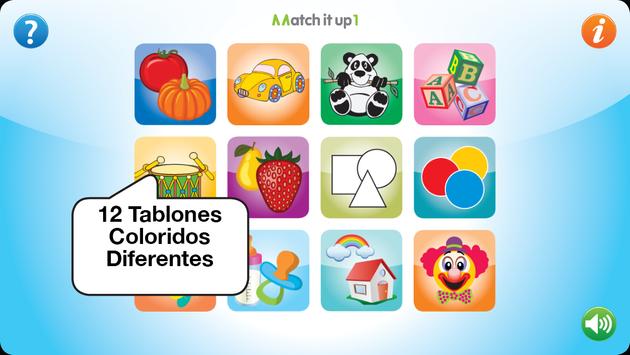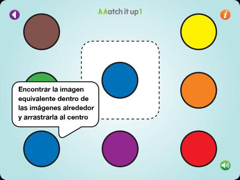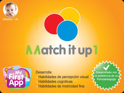 Match it up ayuda a desarrollar habilidades de percepción visual, habilidades cognitivas y puede también desarrollar habilidades de lenguage con la ayuda de los padres, por ejemplo, al nombrar los objetos y colores.