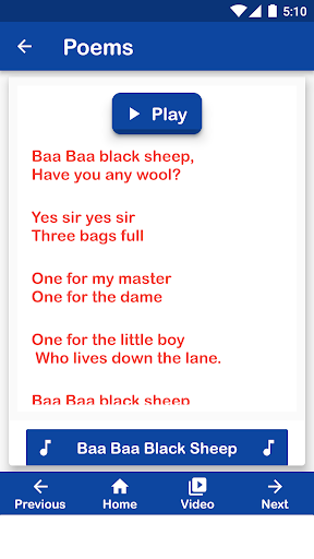 Play Nursery Poems and Stories en formato de audio y video. Los niños también pueden leerlos y aprenderlos.