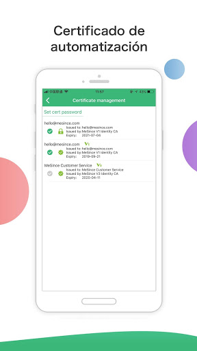 El servicio gratuito de administración de claves en la nube le permite instalar automáticamente su certificado de cifrado cada vez que instala la aplicación MeSign en un nuevo dispositivo para iniciar sesión en su correo electrónico. El certificado de correo electrónico caducado también se renovará automáticamente de forma gratuita.