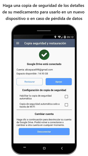 • El usuario puede hacer una copia de seguridad y restaurar los datos usando Google Drive
