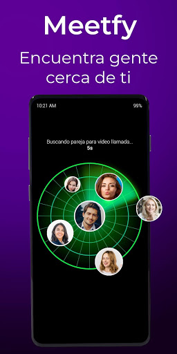 Meetfy te conecta automáticamente con el resto del mundo con sólo pulsar un botón. Las videollamadas anónimas de Meetfy no requieren de un perfil verificado.