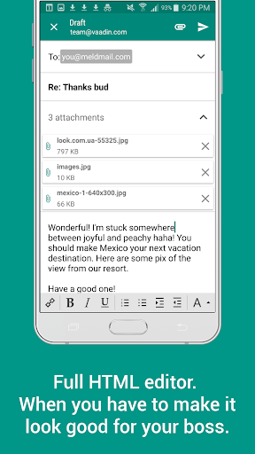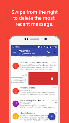 ✔ Meldmail respects your privacy and works right from your phone. Unlike other apps, your contacts & emails are never shared, stored or processed remotely by us or our partners.