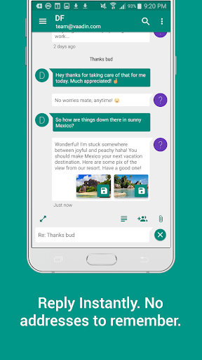 ✔ Emailing with Meldmail feels just like texting. Spend less time remembering addresses and more time writing messages.