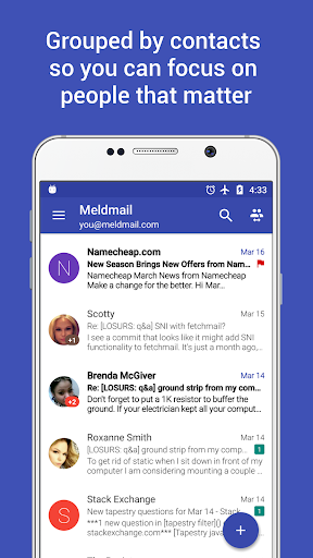 Meldmail transforms your inbox and groups emails by contacts, so you can connect with friends instantly and filter out spammers quickly. Experience an Inbox that's up to 90% smaller and respond to important messages faster.