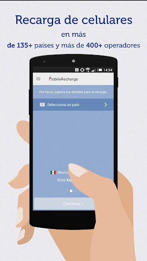 Utiliza la aplicación MobileRecharge y recarga crédito a cualquier celular prepago en más de 140 países, incluyendo: