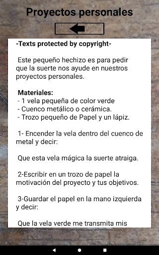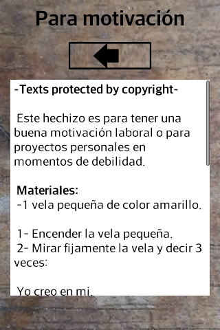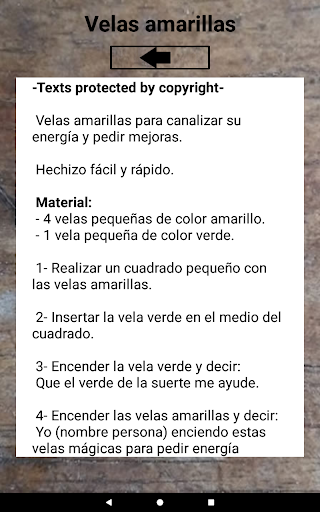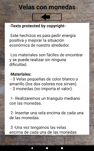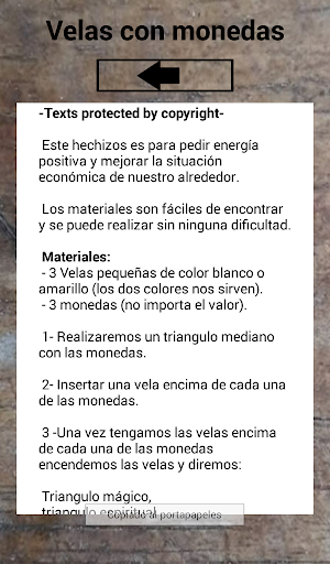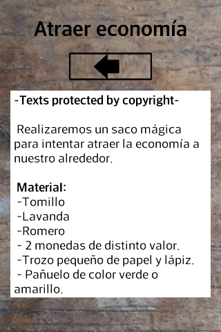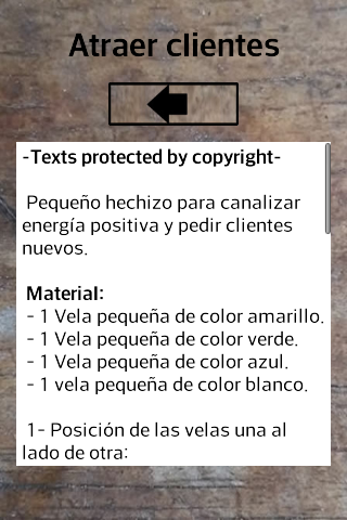Los materiales y textos de esta aplicación son siempre rituales de magia blanca, son fáciles de realizar y rápidos.