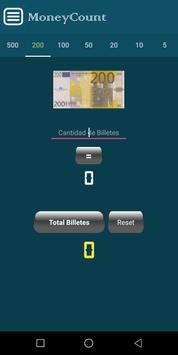 Solamente basta con indicar cuántos billetes hay de cada uno y la aplicación calcula el total de dinero.