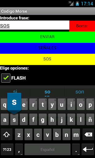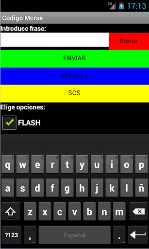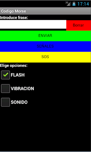 Sencilla aplicación para enviar señales luminosas en código morse utilizando el FLASH