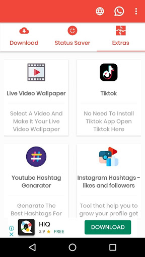 • La aplicación admite el servicio de guardado de estado y la descarga de video de todos los sitios populares.