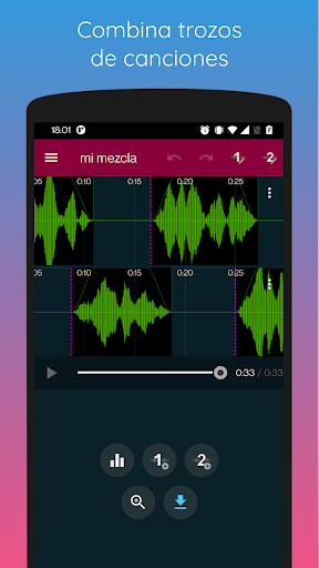 Para unir las canciones, puede ponerlas una después de la otra, o puede hacer que se superpongan. Hay dos pistas de audio para que pueda insertar piezas de música dentro de otra.