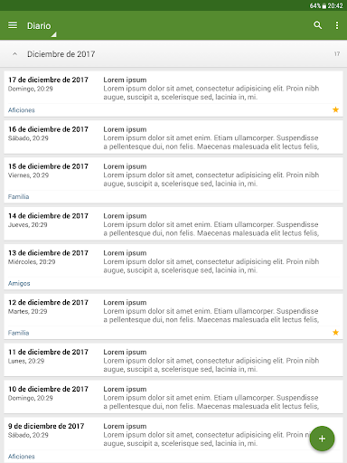 - Sincronizar entradas en el diario a través de Google Drive entre todos los dispositivos Android que utiliza