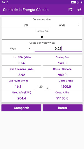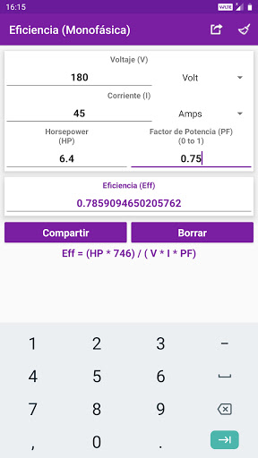 Mi Calculadora Eléctrica contiene 45 calculadoras, que puede rápida y fácilmente calcular diferentes parámetros eléctricos. Cálculos y conversiones automáticas con cada unidad y el valor cambia. Valores calculados y los resultados se pueden compartir en redes sociales, correo, mensajes y otras aplicaciones para compartir. A debe tener utilidad.