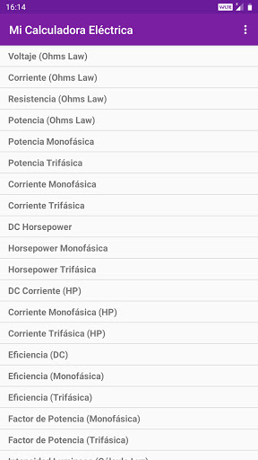 Mi Calculadora Eléctrica contiene los siguientes 45 Calculadoras: