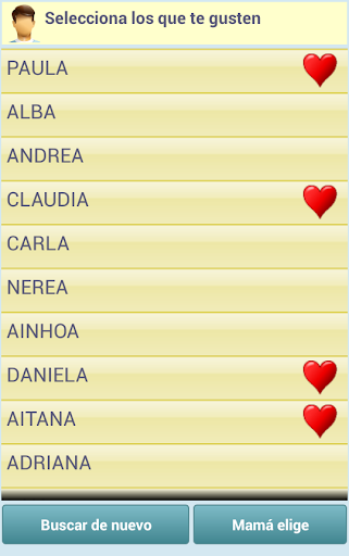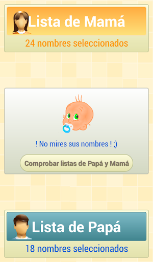 Una vez seleccionado si es niño o niña, la app mostrará un listado de nombres donde tanto el padre como la madre elegirán sus favoritos por separado.