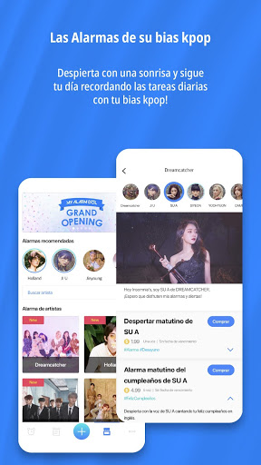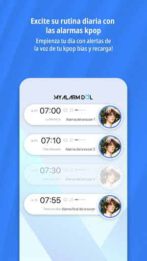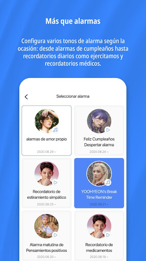 Desde las alarmas de la mañana hasta las diversas alertas del día, la voz de tu k-pop favorito te ayudará a pasar todo el día con su encantadora voz.