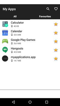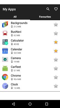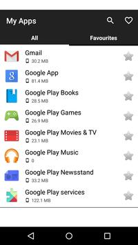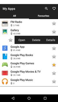 - list of all installed apps - Configurable favorites - quick start and remove - details: name of the package, installations, used memory, required permissions - quick access to the Google Play store