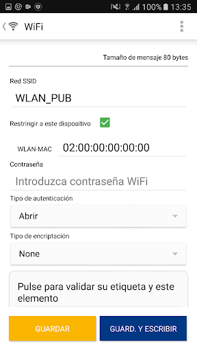 NOTA: La instalación de TagWriter en un teléfono sin NFC está habilitada pero aún no le permite crear etiquetas del programa. Pero se pueden preparar los conjuntos de datos NFC en un dispositivo de pantalla grande y luego compartirlos con un teléfono NFC para usarlos. Además, se puede tomar una pre-visualización sobre lo que podría hacer con un teléfono con NFC.