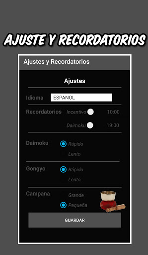 5) Opción de soporte de audio para Daimoku (lento y rapido).