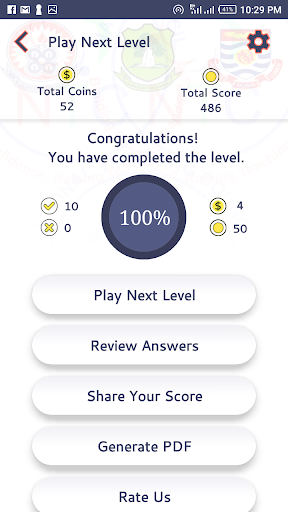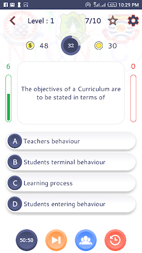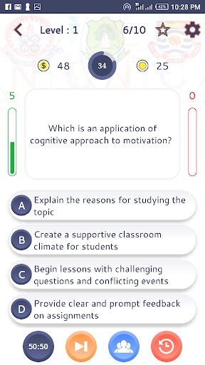 You can check your performance with other quiz takers with the leaderboard and achievement buttons on the home screen. You can also watch the in-app video to earn more coins which you can use for 50:50, Audience poll and reset timer lifeline. ( Please note that these functions required internet access).