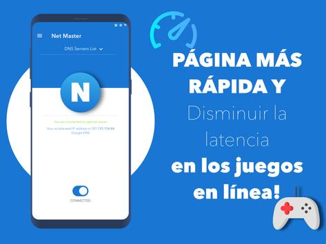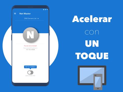 Net Master & Optimizer le ofrece una mejor experiencia de conexión a Internet. Escanea las conexiones DNS a tu alrededor. Selecciona y conecta con el tiempo de ping más bajo.