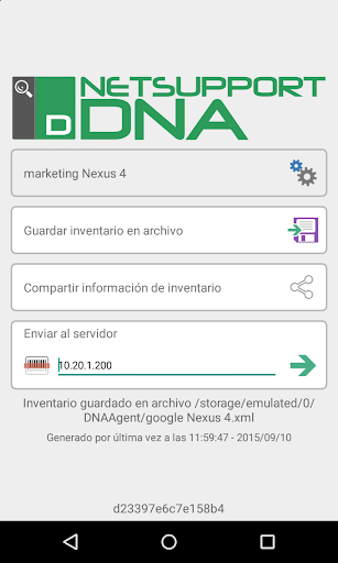 Además de las funciones principales del producto para la gestión de equipos de sobremesa, está disponible este agente de inventario adicional para dispositivos móviles. Al iniciarse, la app interrogará al dispositivo para recopilar detalles del hardware clave del sistema. Una vez recogidos, estos datos se pueden enviar a su servidor local de NetSupport DNA, desde donde estarán disponibles para elaborar informes dentro de la Consola de administración de NetSupport DNA.
