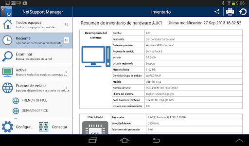 Genere en cualquier momento un informe de inventario de hardware completo de un dispositivo remoto.