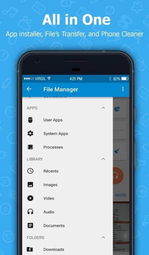 Manage all your applications easily. You can open, uninstall applications and view details. You can also share cool apps with friends, even those installed. This application manager is better than another file manager, such as Samsung file manager.