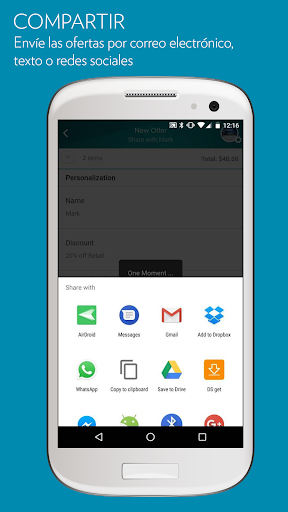 Compartir productos nunca había sido tan sencillo como con la app My Store. En cuestión de segundos, podrá crear y enviar ofertas de productos personalizadas para clientes o contactos, con mensajes individuales y privados.