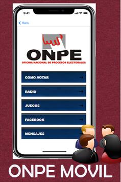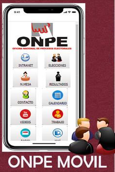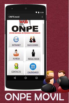 ONPE Móvil es la aplicación oficial de la Oficina de Nacional de Procesos Electorales– ONPE Movil, encargada de administrar las elecciones nacionales,regionales,provinciales y distritales de todo el País .