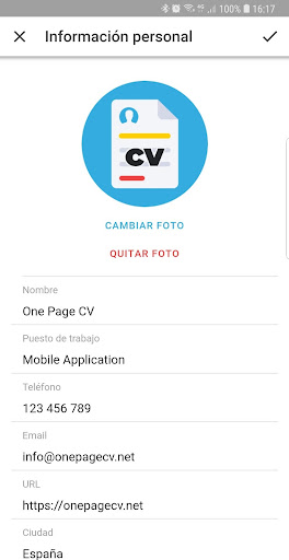Con la app OnePageCV puedes crear gratis un curriculum de una página. Crea y exporta un curriculum vitae (CV) en pdf y compártelo con las empresas. ¡De este modo tendrás más éxito para encontrar trabajo!